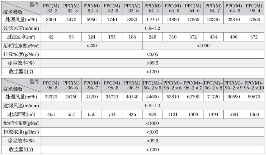 防爆氣箱式脈沖袋除塵器主要技術參數(shù)