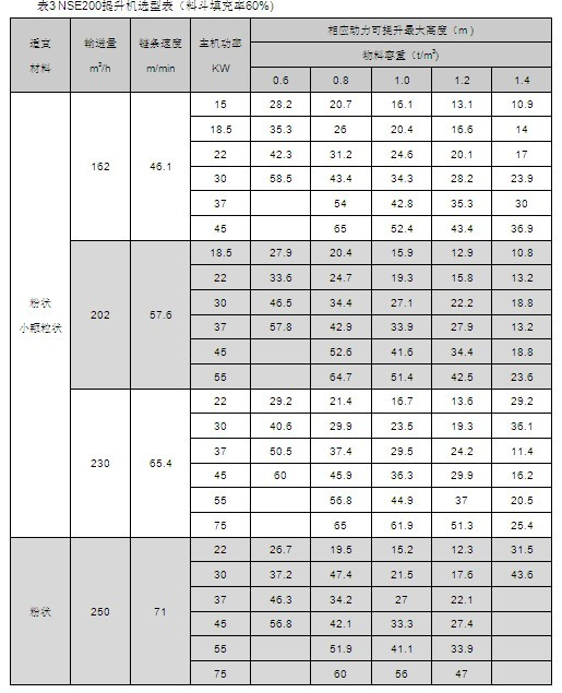 NSE系列高速板鏈斗式提升機共有九種基本型號:NSE100、NSE200、NSE300、NSE400、NSE500、NSE600、NSE700、NSE800、NSE1000,每種型號根據(jù)輸送物料的不同,選擇不同的提升速度,提升速度上限<70m/min,提升高度上限65m。另外,奧普公司還可根據(jù)用戶要求輸送量介于上述型號之間的擴展型號。