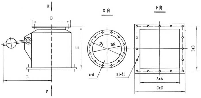 ZFX-H錐形鎖風(fēng)閥主要由殼體、錐形帽、頂針、閥桿、重錘、彈簧等零件組成,采用鋼板焊接結(jié)構(gòu),設(shè)計新穎,結(jié)構(gòu)簡單。錐形鎖風(fēng)閥利用力矩平衡的方法實現(xiàn)卸灰。當(dāng)作用于翻板上的物料產(chǎn)生的力矩大于重錘搖桿產(chǎn)生的力矩時,閥板打開向下卸灰。一旦積灰卸去后,重錘與搖桿產(chǎn)生的力矩使閥板迅速關(guān)閉,實現(xiàn)鎖氣。落料的頻率及卸灰量依據(jù)工況需要來調(diào)整重錘位置。