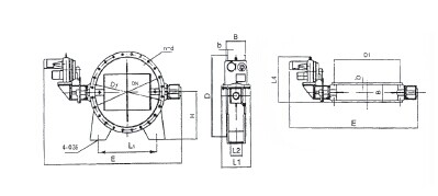 DN | D | D1 | B | b | n—d | E | H | L1 | L2 | L3 | L4 | 電動執(zhí)行器 | 電動功率 | 重量(kg) | |