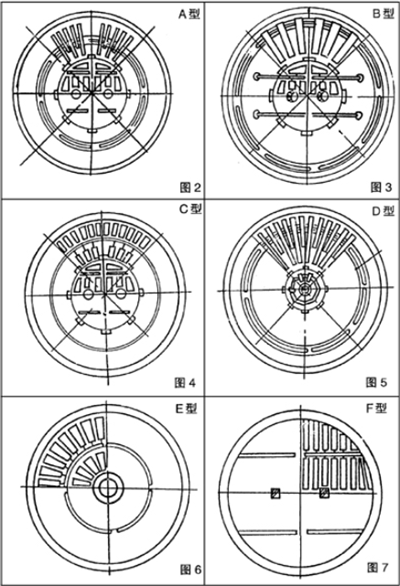 充氣箱在庫內(nèi)排列時,原則上要求實(shí)際排列面積占總面積的比例越大越好,攪拌庫和混合式均化庫中心區(qū)(攪拌區(qū)),對這點(diǎn)要求更為重要,現(xiàn)提供A、B、C、D、E、F六種基本排列形式供選用。