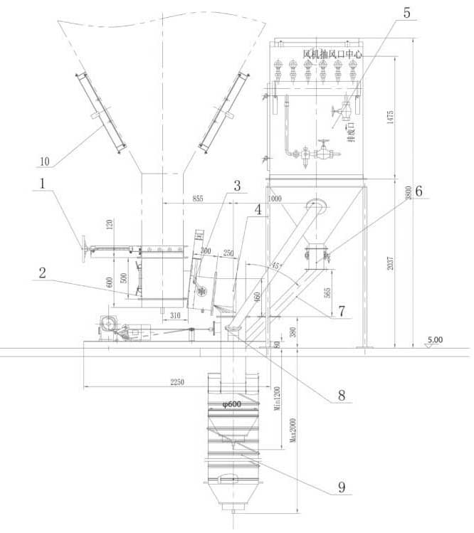 SZ-II型散裝機分直通式和非直通式,根據(jù)工藝布置需要而定。